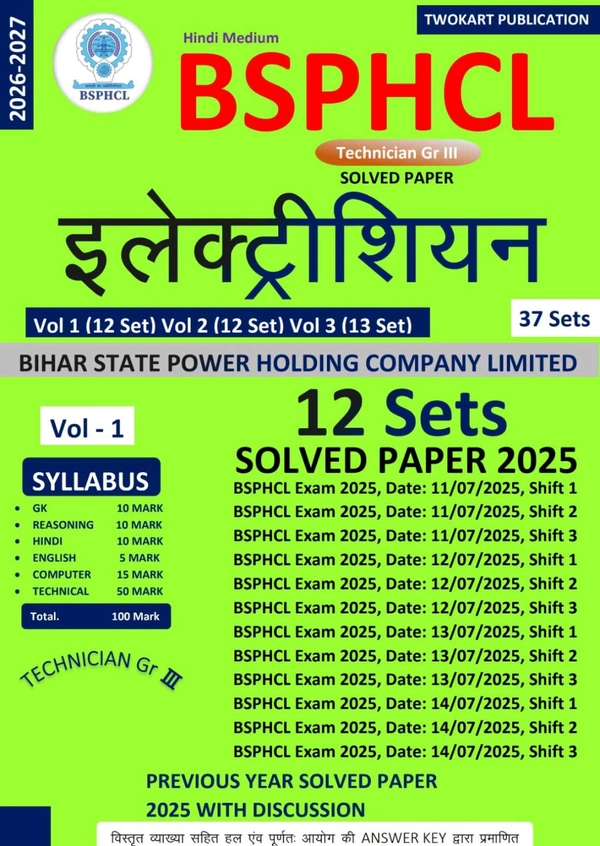 2026-27 BSPHCL Technician Grade -III Electrician Solved Papers 174. This Book Contains Previous Year Solved Papers From 2025 Tο 2027 With Detail Explanations (Paperback, Hindi, Twokart Publication EXPERT TEAM)