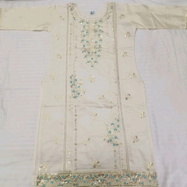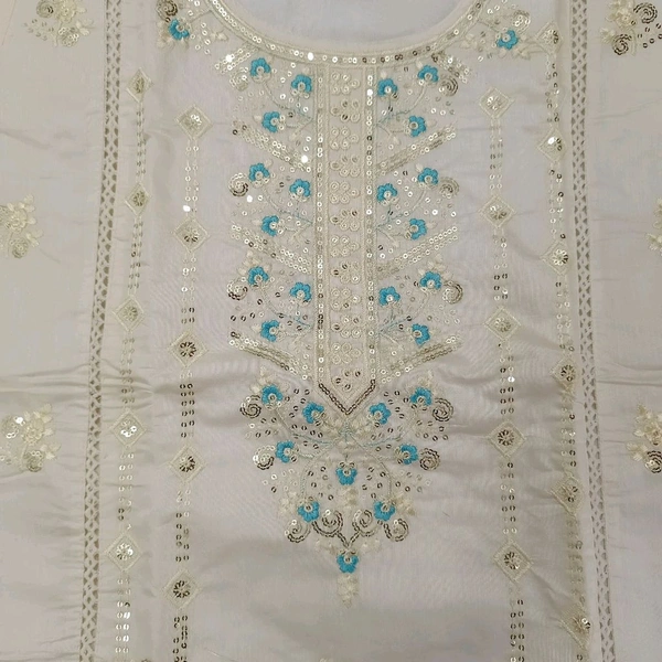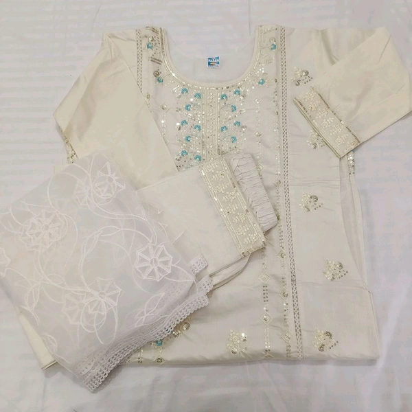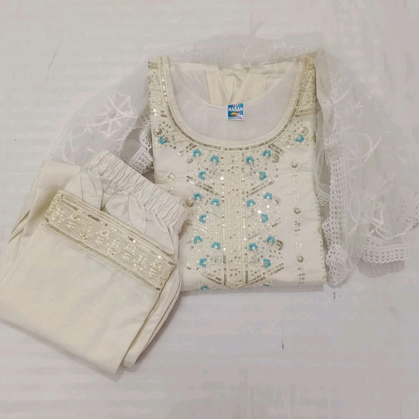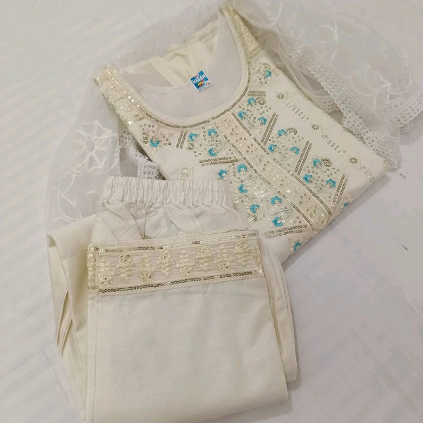 Twokart Embroidery Cotton Blend Kurta, Pant, Duppata Set Suit ( Cream , Size M, SUIT1)
