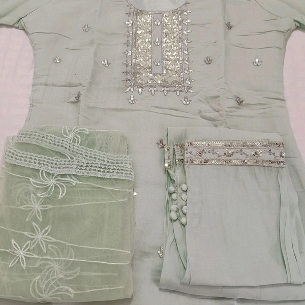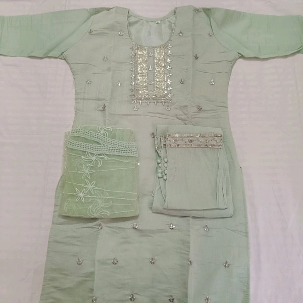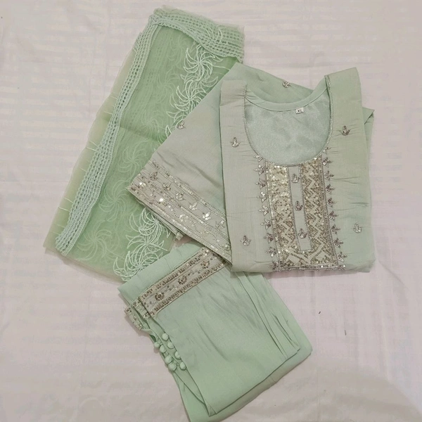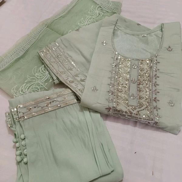 Twokart Embroidery Cotton Blend Kurta, Pant, Duppata Set Suit (Green, Size M, SUIT5)