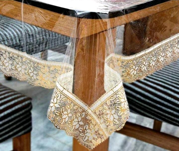 Twokart Floral 4 Seater Table Cover (Transparent, PVC)