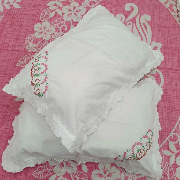 Twokart Hand Embroidery Cushion & Pillow Cover (Pack Of 2, White) (Pillow18)