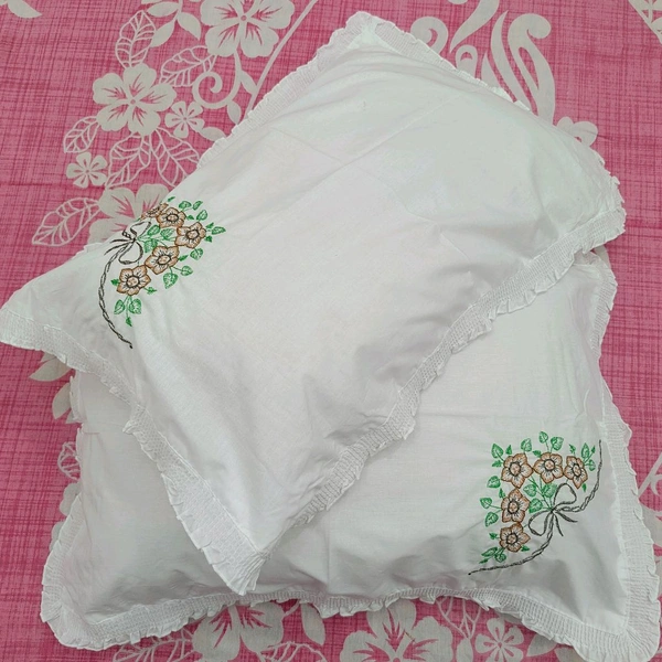 Twokart Hand Embroidery Cushion & Pillow Cover (Pack Of 2, White) (Pillow20)