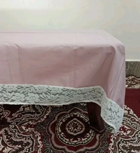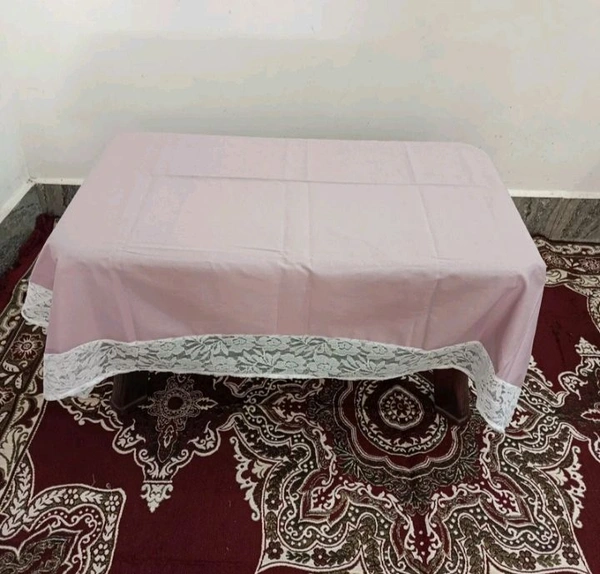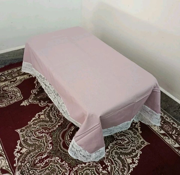 Twokart Self Design 4 Seater Table Cloth (Light Pink,Cotton) Border Design