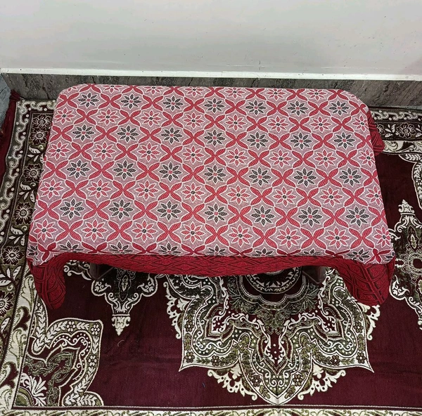 Twokart Self Design 4 Seater Table Cloth (Red, Cotton)